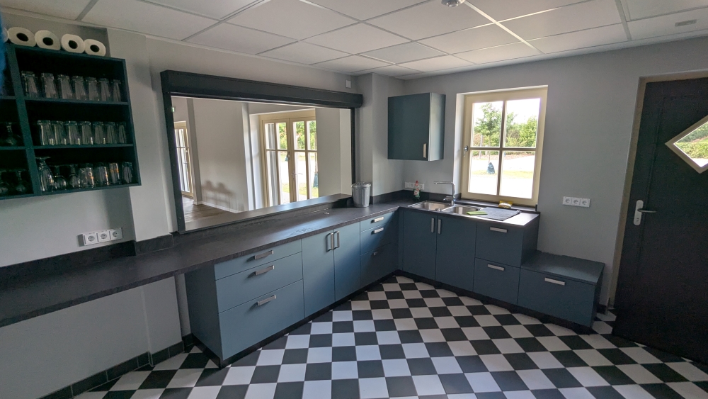 Veranstaltungsraum Kapazität: 112 qm, d. h. 80 Personen mit Sitzplätzen an Tischen, 120 Personen bestuhlt ohne Tische, eine Bühne 4 x 4,5 m ist vorhanden.