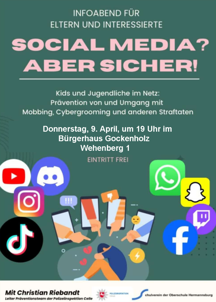 Vortrag von Herrn Riebandt, Leiter Präventionsteam und Beauftragter für Jugendsachen der Polizeiinspektion Celle, informiert über Kinder und Jugendliche in Verbindung mit sozialen Netzwerken. Wo sind wir unterwegs?